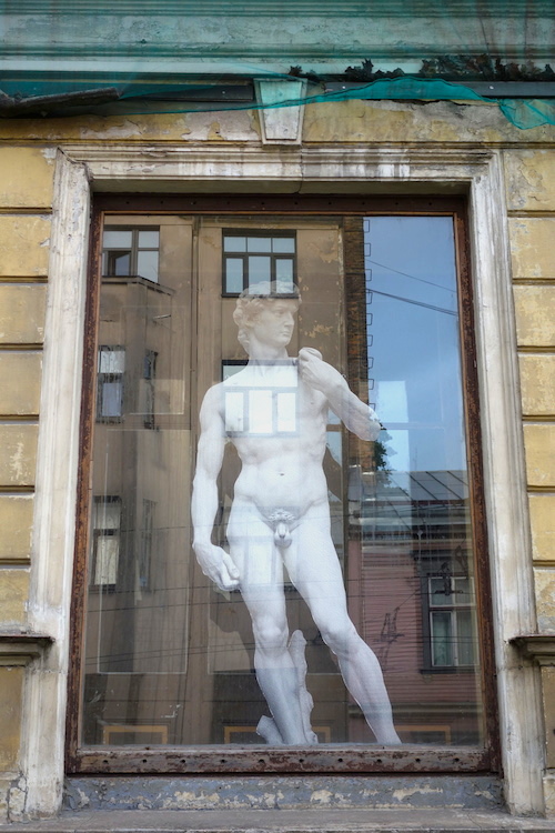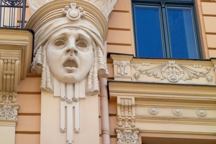 We explore the old town, the medieval part of the city, as well as the streets of early 20th-century Art Nouveau buildings, of which there are hundreds in Rīga. Some of the facades are recently renovated and flamboyant with statues, motifs and fantastical ornamentation. The interiors are largely down-at-heel, still reeling from the Soviet era when the once light and spacious apartments became communal living spaces for two to three emigre families and the art nouveau features were stripped as aesthetics gave way to more basic needs.
