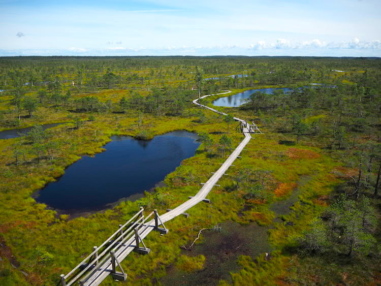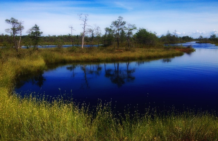 Outside of Rīga lies a green world of woods and national parks. We walk in Kemeri National Park, stunningly beautiful with its high lakes, marshes and dwarf pine trees. Neon blue dragonflies hovering over peat black pools; wild blueberries, cloudberries and cranberries; rare birds like the wood sandpiper and the European golden plover. In the forest on the way to the marshlands, we pass an old man returning from foraging, his cane basket laden with wild mushrooms.