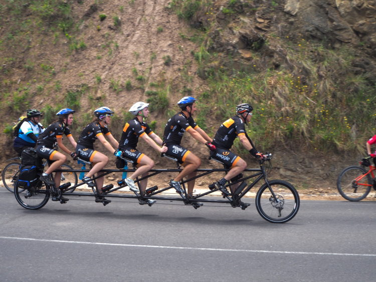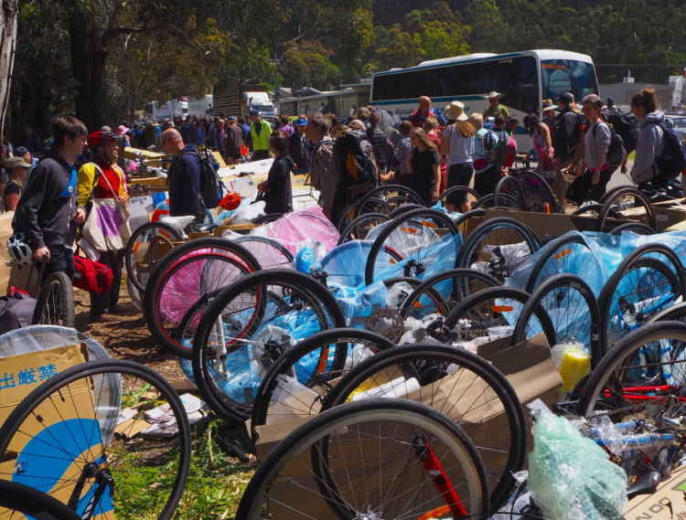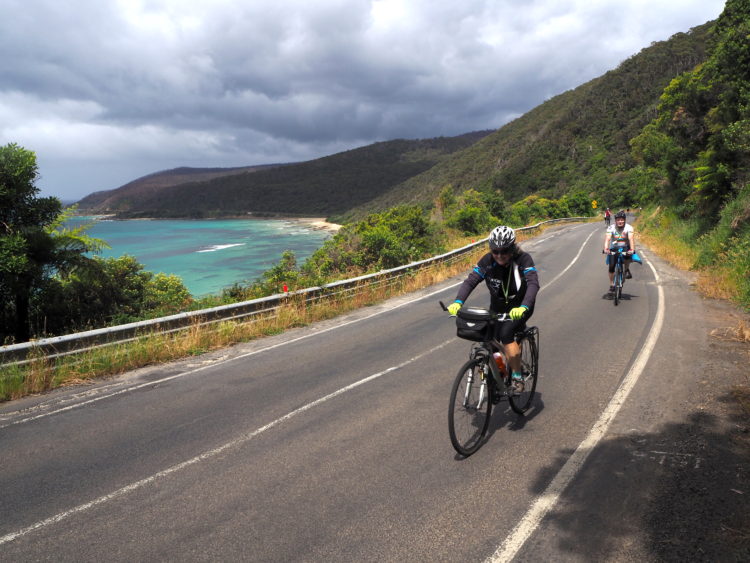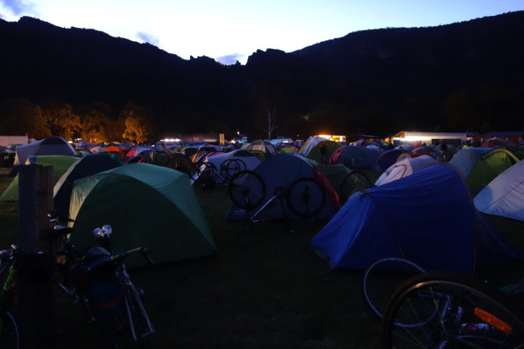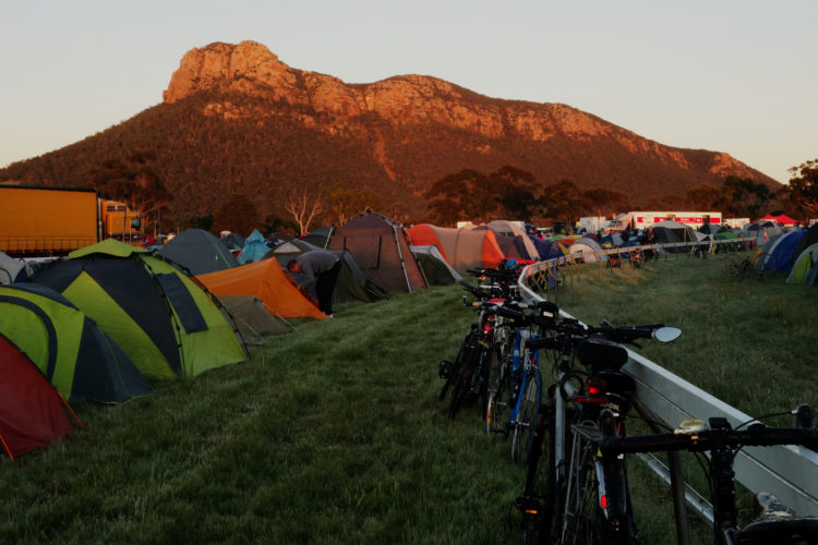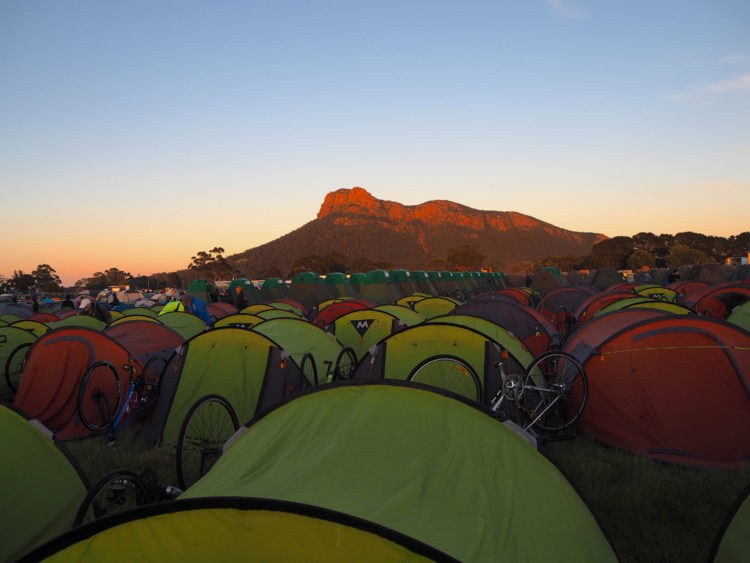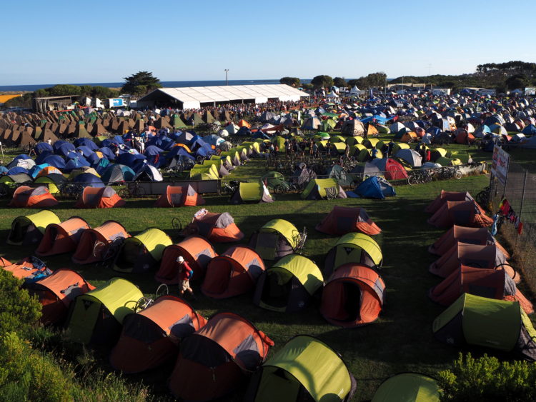 Day four, 44 kilometres ridden, 44 kilometres still to ride with tired legs and stiff shoulders. An initial exhilarating downhill ride through the forest. The ‘descent into hell’ as one marshall knowingly described it, for what follows is an unrelenting climb up over Hordern Vale. As one hill seems to flatten, another reveals itself and then another. Spinning, spinning, spinning – albeit slowly. Willing ourselves to endure. Then finally reaching the clearing in the forest that marks the end of the climb and the beginning of a joyous five-kilometre downhill ride into Apollo Bay. Locals cheer us on from the roadside as if we are riding the Tour de France. On arrival, all we can muster is energy enough to collect our gear, erect our tent, shower and make our way to the canvas bar for a reviving ale.