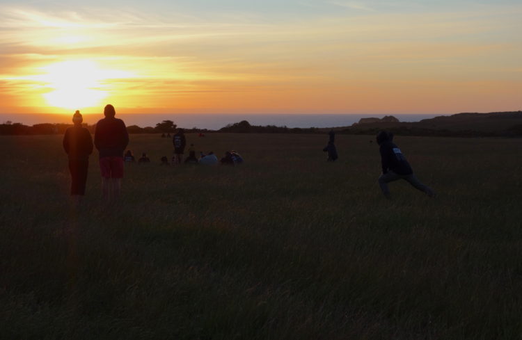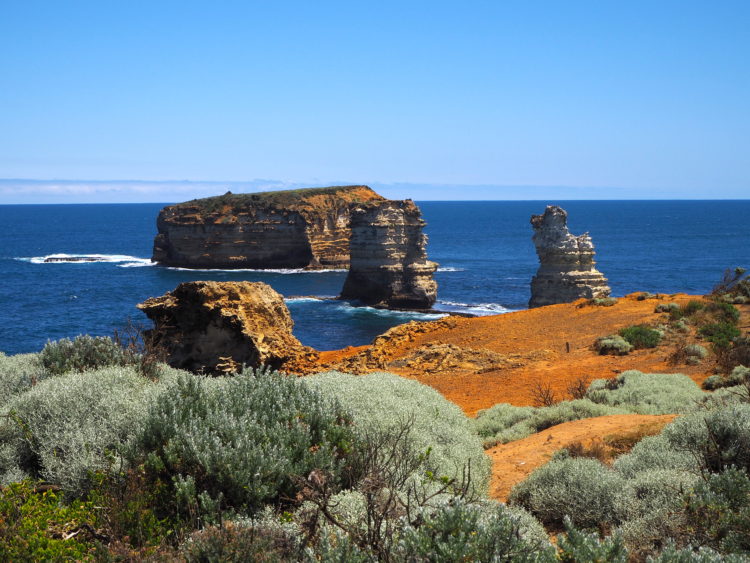 Seventy kilometres from Mortlake we arrive at the sea and turn southeast into a headwind that we push against for the next 30 kilometres. The Bay of Islands, the Bay of Martyrs, emerald green seas, white caps, rocks shattered by the wind and the waves. Port Campbell abuzz. A final climb to our campsite on a grassy hill overlooking the southern ocean and the twelve apostles. Sea winds, a sea mist, sea skies. People atop the hill at sunset watching the light sink into the sea and night settle on the earth.