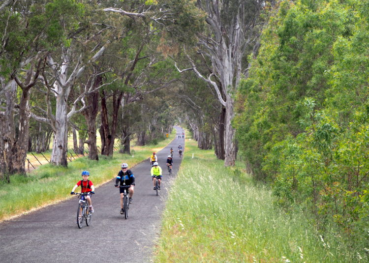 A litany of creeks and rivers; the Merri, Mullum Mullum, the Maribyrnong, Kororoit, Dandenong, Moonee Ponds, the Yarra. All trails we ride with the impending Great Victorian Bike Ride in mind. Trees scarred with ceremony, the burnished gold cupolas of orthodox churches, a kangaroo by the western ring road unconcerned by the roar of trucks and tradies utes, artichokes and fennel growing wild, the last of spring’s wattles bright yellow with blossom. We train on the road as well, out in the hills beyond the city where tall trees grow and parrots flash past, a blur of neon green and red and blue.