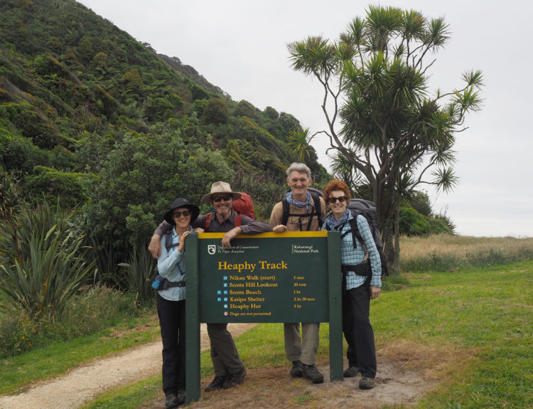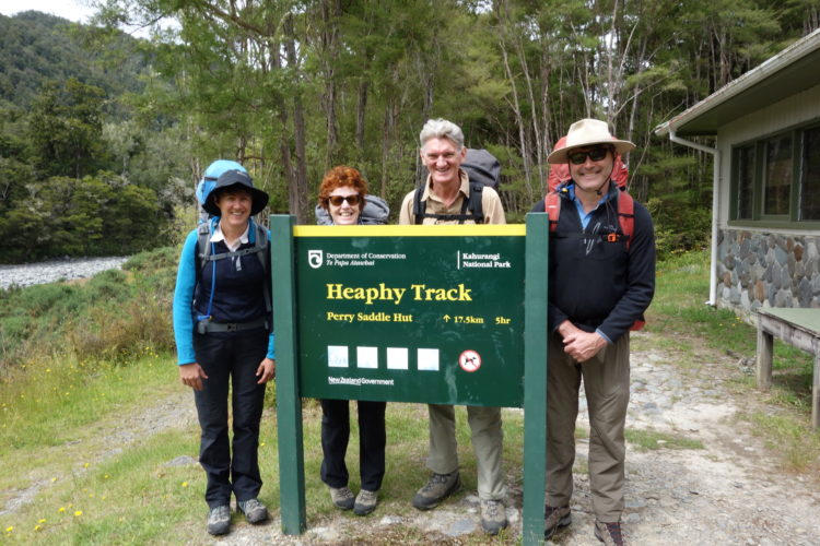 A calm sea, blue-sky, early morning. We leave our eyrie high above Golden Bay and embark on a three-hour winding bus journey through small coastal towns and inland hamlets to the start of the Heaphy Track, one of New Zealand’s nine Great Walks. We are four, following in the footsteps of Māori greenstone hunters, drovers and gold seekers as we walk our way out of one year and into the next.