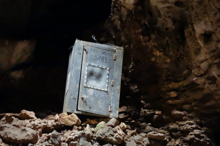 New Zealand cedars and beech forests sunken into the limestone. Deep river gullies concealing a complex network of multistoried limestone caves with hanging gardens and waterfalls. A meat safe abandoned on a rock ledge in the first cave of three we explore, theatrically lit by the sun slanting in from an opening above. Past a series of sinkholes and rocky outcrops, a second cave offers dramatic views out onto the escarpment. And in the third cave, a waterfall cascades from the sky.