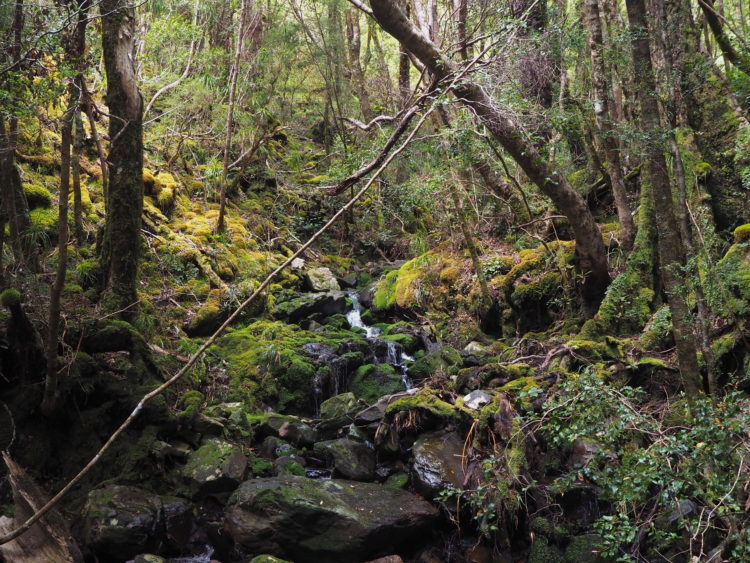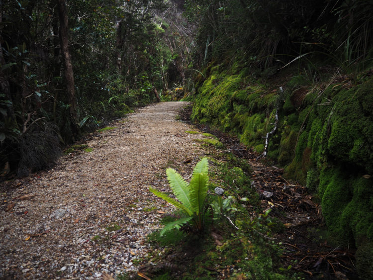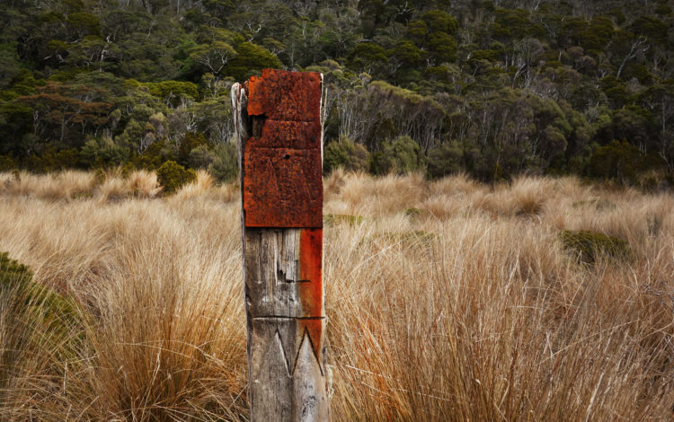 Frost covers the earth at dawn. A calm, still, humid morning follows. We walk across tussock downs and ford creeks and rivers. An old milepost marks the border between counties. We leave behind Golden Bay and enter West Coast county, known for its tempestuous weather and wild, wide rivers. Rivers that rise rapidly after rain. Drowning rivers. Limestone becomes granite. The boulders, as beautiful as sculptures. Small delicate wildflowers, mosses of different hues, ferns unfurling the brightest of greens. West coast wetlands.