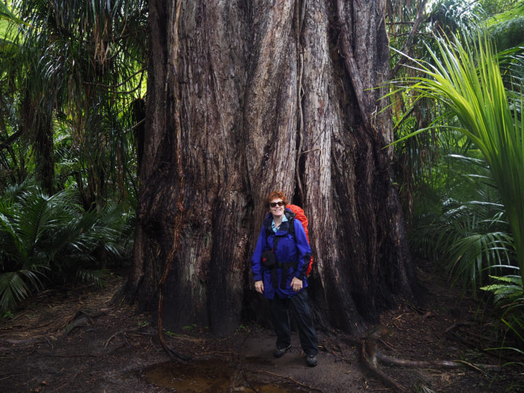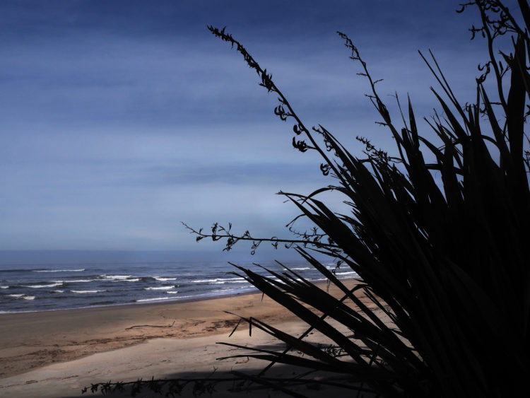 We cross headlands thickly forested with rata and palms. Waterfalls cascade down narrow gullies, a white rush of water over boulders. Parts of the track are unstable and prone to landslides. In places, we are warned not to stop because of the danger of falling rocks. We come across a park ranger documenting a new fissure in the track. New Zealand straddles the collision zone between two moving plates of the earth’s crust and as a consequence is jolted by thousands of earthquakes every year. Fortunately, there are no tremors this afternoon and we walk safely to the track’s end at the mouth of the Kohaihai River. Its banks are crimson with flowering Pohutukawa trees, the red snow of a New Zealand Christmas.