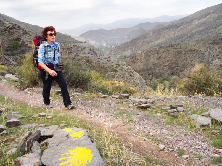 Signs cautioning drivers of deer on the road. The village of Alboloduy glowing white on the hillside; its medina a steep maze of houses decorated with flowering plants and brightly glazed tiles. Church bells ringing on the quarter-hour. By nightfall there are seven of us in the pilgrims’ Albergue high above the town, strangers to each other only for the brief time it takes us to fall into the habit of meeting at day’s end over a beer or a meal. Paco and Pachi, both Spanish; Chan, a Taiwanese American; Gerard, a gentle Frenchman; Peter from Germany; and we two Australians.