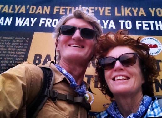 The next day we visit the Culture Routes Society office in Antalya to thank them for their work developing, waymarking, maintaining and promoting the Lycian Way for the benefit of local communities and walkers wanting a rare and enriching cultural experience. Kate Clow is about and generously sits down with us and talks about plans for future trails over a çay. Before we leave to enjoy an end-of-walk celebratory dinner, Kate inscribes our guide book. ‘Anna and Michael. Congrats on reaching the end at Geyikbayiri. Come back for the St Paul Trail. Kate’