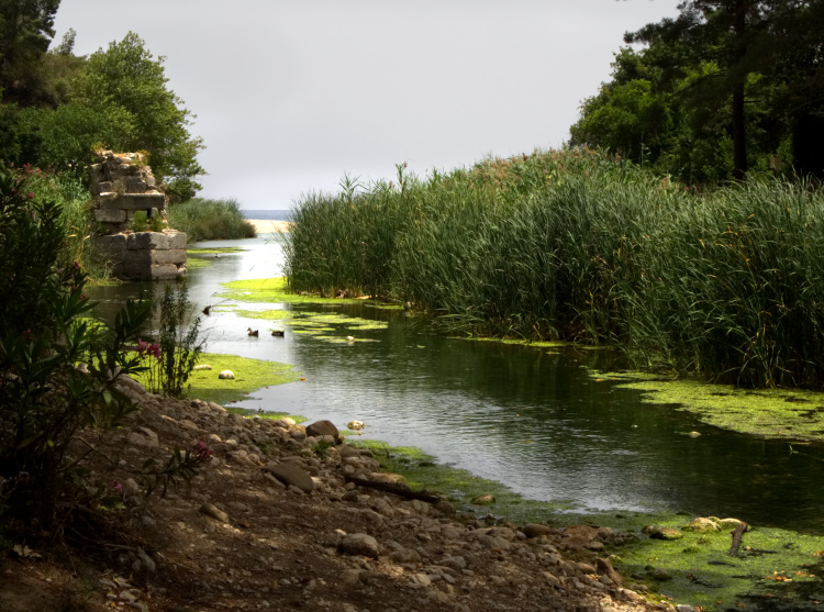 Down through pines, bay and strawberry trees. A path strewn with small, golden leaves; a valley of butterflies; an impenetrable hillside of trees felled in a wild storm. On towards Çirali by way of the extensive ruins of Olympos, one of the six leading cities of Lycia, land of light. The river that flowed through the gorge enabled ships to come right into the city to berth and Olympos controlled the sea routes from Rome to Syria and Cyprus. There are the remains of walls, an acropolis, a theatre, baths, tombs, a temple and an elaborately carved sarcophagus. Olympus was at its most prosperous in the 5th and 6th centuries AD. Raiders, war, earthquakes and plague led to its demise and it was lost to history until nomads started using it as winter quarters in the 18th century. Now archaeologists are working painstakingly to uncover its mysteries as scantily clad sunbathers use its ancient paths to reach the sea.