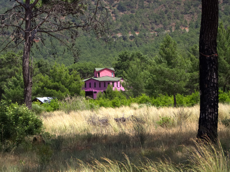 Stopping for baked halva and coffee at a restaurant in Ulupinar, a village known for its trout farms and Sunday afternoon visitors. Fortified, we climb 1,000 metres up through cedar forests to the village of Beycik. The climbing is gradual except for a few sharp pinches. Sweet fragrant blackberries for the picking. A dog following us. A drum beat. Thunder exploding. A sudden heavy downpour of rain. Then the sky clears. Electric blue butterflies, water cascading, cedar-clad houses perched on hillsides. Red poppies and pink-frilled wildflowers.