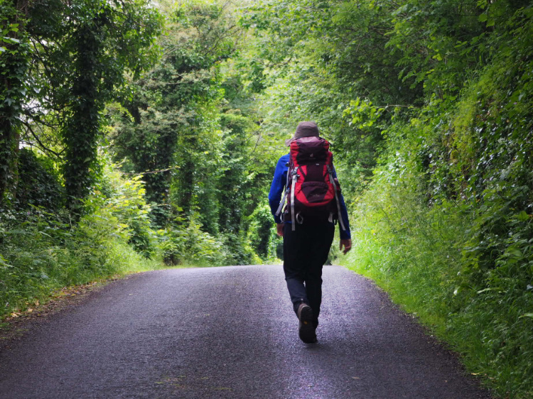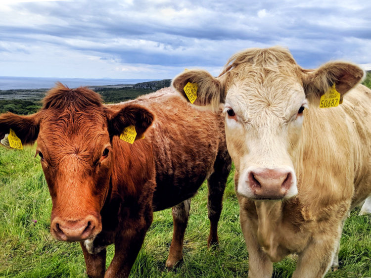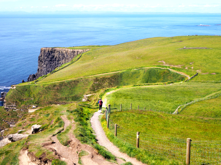 Green hedgerows make a sanctuary of the narrow back roads we walk once we cross O’Brien’s bridge and leave the Atlantic shoreline for a time. Through rural County Clare, past farms where well-fed, caramel coloured cattle graze.