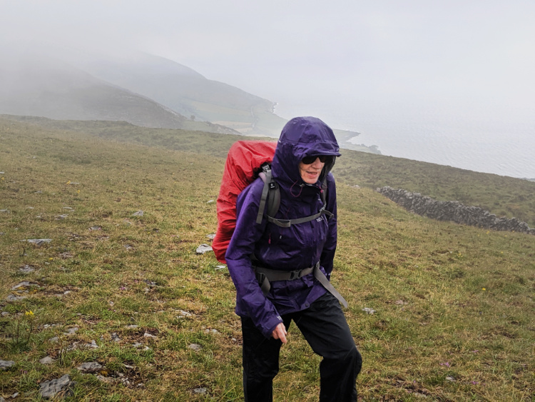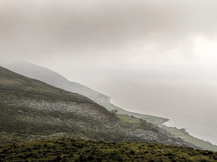 Around and up and over Black Head. Conical hills of grey shale sloping down to the sea. An amphitheatre sculptured in the past by great sheets of ice. Ring forts off in the distance. One of them, Cathair an Ard Dorais, has remnants of both a chapel and a shebeen (an illicit distillery and bar).