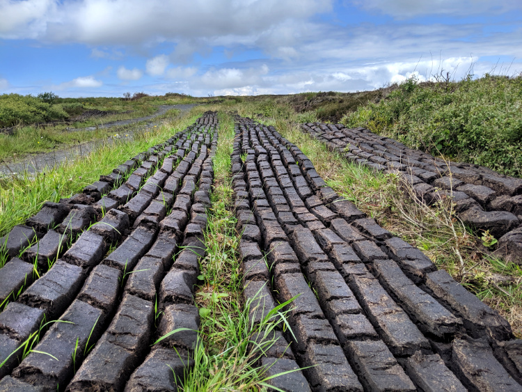 Peat still being cut and laid out to dry. Walking the bog road walked by peat cutters for centuries. With the scarcity of trees in the Burren, turf rights to the wet, spongy, blanket bogs of these uplands were hard fought for and tightly held.