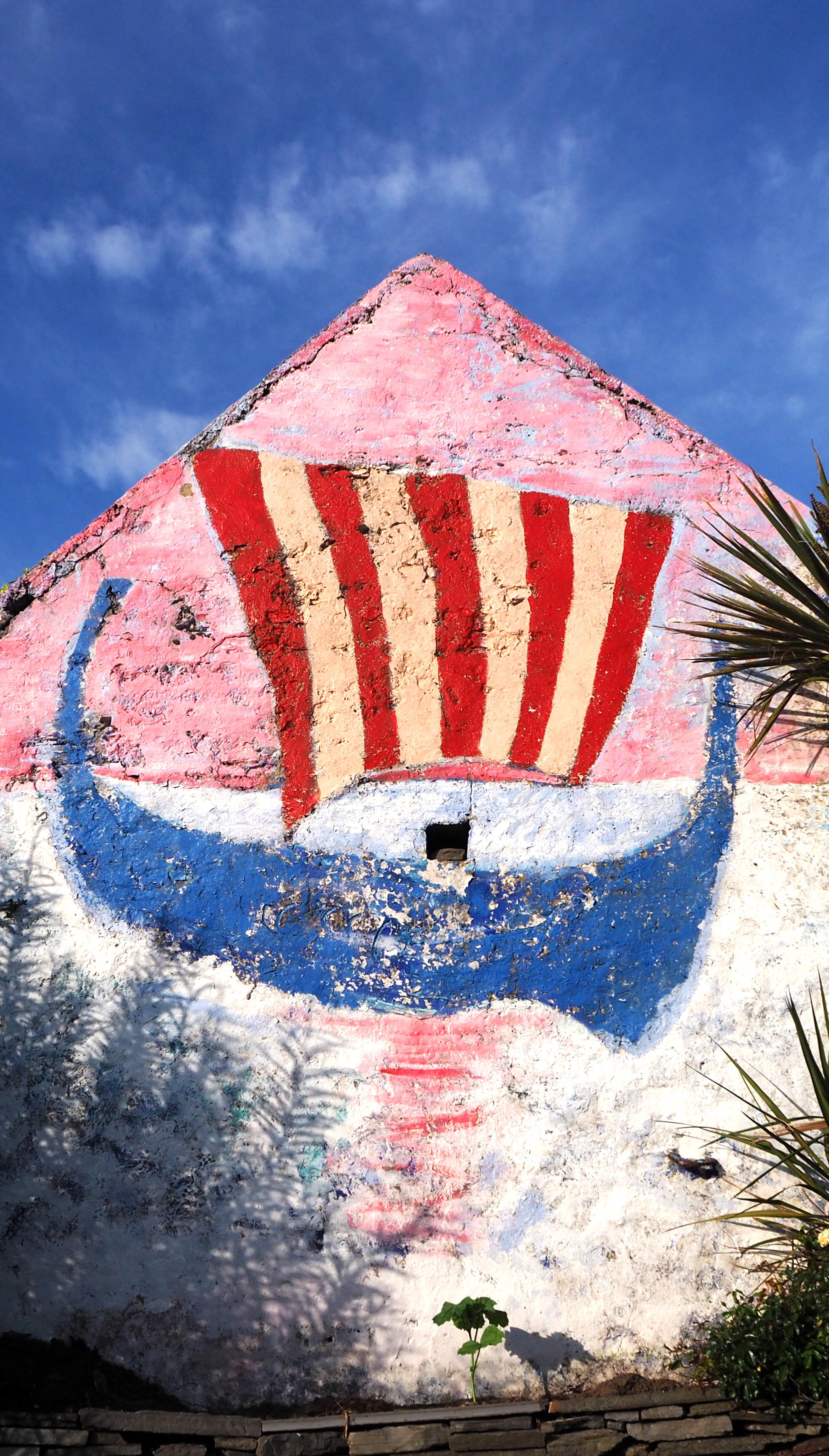 White horses in the bright green fields high above the hazy blue sea. Magenta foxgloves, crimson fuschias and yellow irises growing luxuriantly by the track. Wild strawberries for the picking. Rooks circling above enclosures where the grass has been cut and raked.