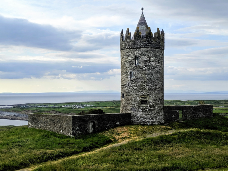 A portal tomb and the ruins of round towers and castles. Doonagore Castle, Ballinalacken Castle and the 12th-century castle at Liscannor, built by the O’Connors and later an O’Brien stronghold. In 1588 Sir Turlough O’Brien is reputed to have presided over the mass execution of 300 survivors of the retreating Spanish Armada, shipwrecked in wild gales just off the coast.