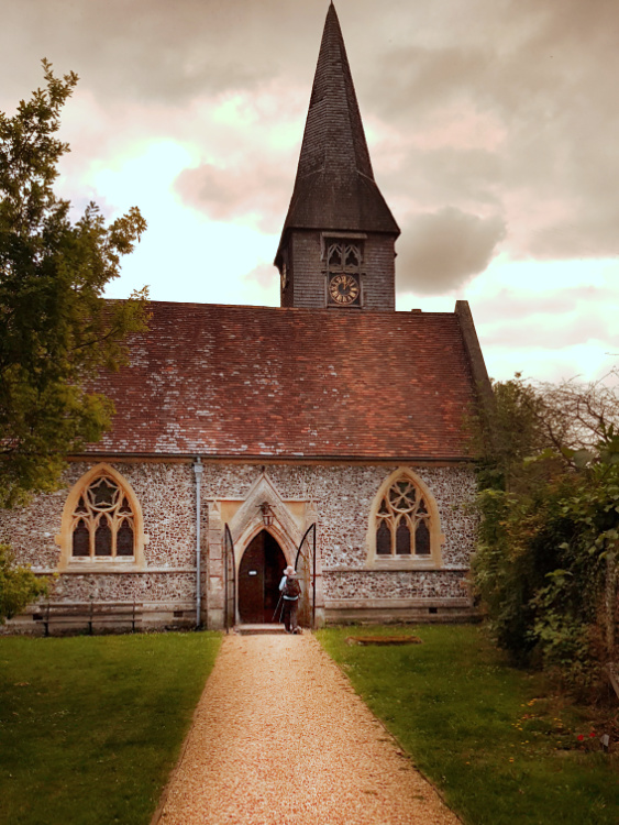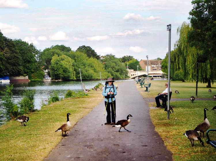All-day to walk and less than 20 kilometres work in it. Cloudy skies, a cool breeze, the sun occasionally flooding the morning with warmth and light. Herons and neon blue damselflies hover above the water. The church at Sonning, founded in Saxon times, is open so we wander it to look at its ornate organ and engraved brass sepulchral memorials. James Sadler, beekeeper, poet and lock keeper thought of Sonning as a ‘spot more lovely than the rest’. It still retains an ancient water mill, historic houses and an air of prettiness.