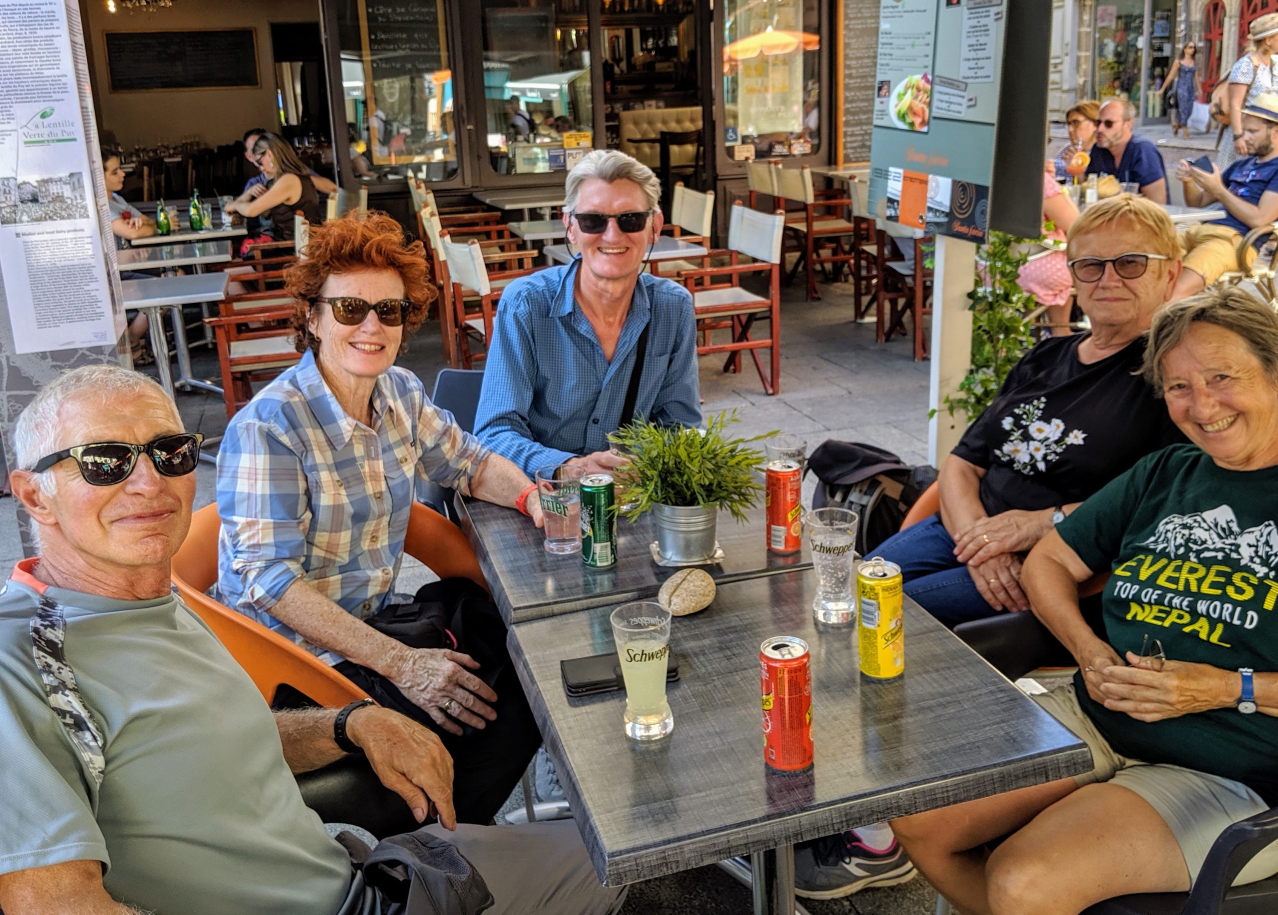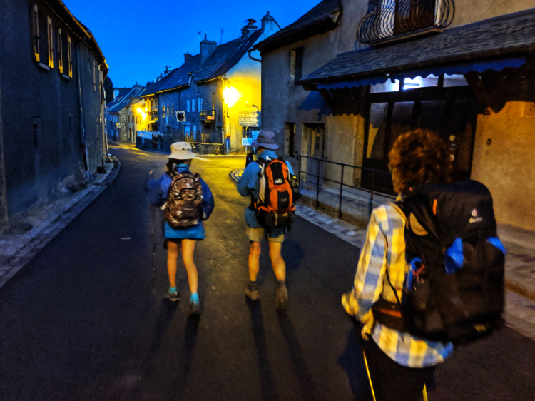 Steep, rocky climbing, some of it tough going. Fortunately, the rain holds off and the walking becomes more joy than effort. Our home for the night is a cabin in the woods on the outskirts of Golinhac. There’s only us in the campground. It’s the last day of the summer holidays and everyone else is on the road home. In a nearby restaurant we meet Jhodie, Brian and Annette; fellow Australians who are walking the Way. After an aperitif, the five of us settle into an evening of easy conversation and bonhomie.