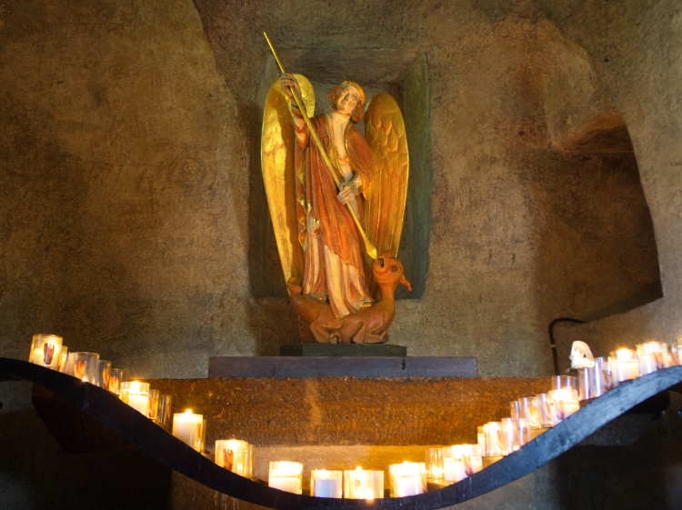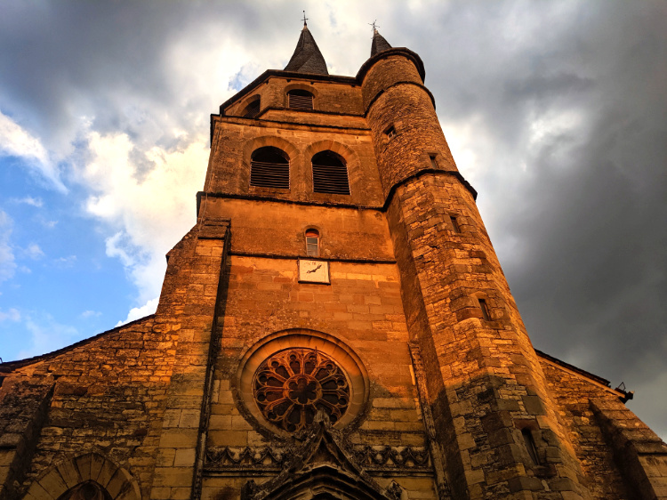 An enjoyable few hours in the company of friends, immersing ourselves in the history of medieval France. Then, once it’s dark, we sit in awe as the extraordinary sculpted tympanum of the Abbey church of Sainte-Foy is illuminated and its stone figures come to life. The players in the Last Judgement. Christ as Judge in the centre. His right hand pointing upwards to the saved and his left hand gesturing down to the damned. Hell on one side, heaven on the other.
