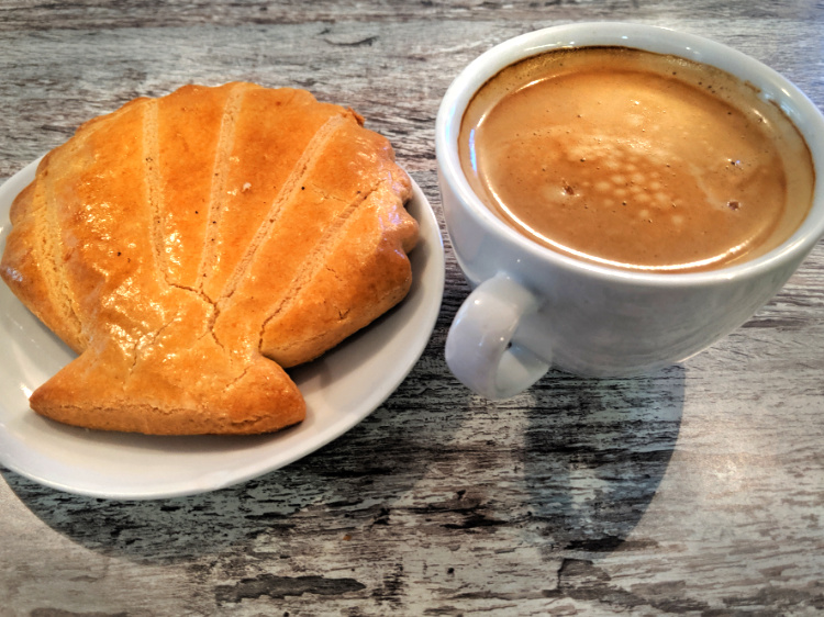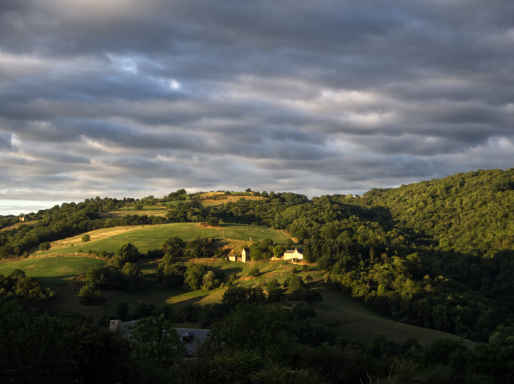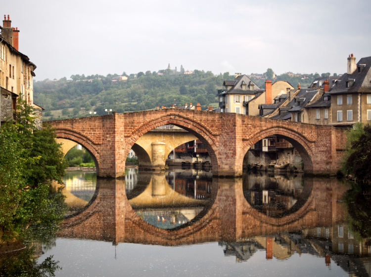 The town is beginning to stir as we walk out on the gothic bridge across the Lot River. Clouds swirling, a forecast of rain. A rooster crowing. The Lot Valley green and lush. Breakfast in a bar in Espalion comprising of coffee from the bar and croissants from a nearby boulangerie: businesses that complement rather than compete with each other.