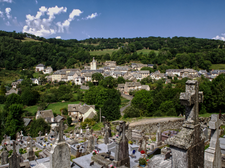 On through the village of Domerie d’Aubrac, founded in 1120 by a Flemish knight in gratitude for his deliverance from bandits and tempests. Then descending steeply, the vast magnificent plateau giving way to woodlands and gorges as we walk into the verdant Lot Valley.