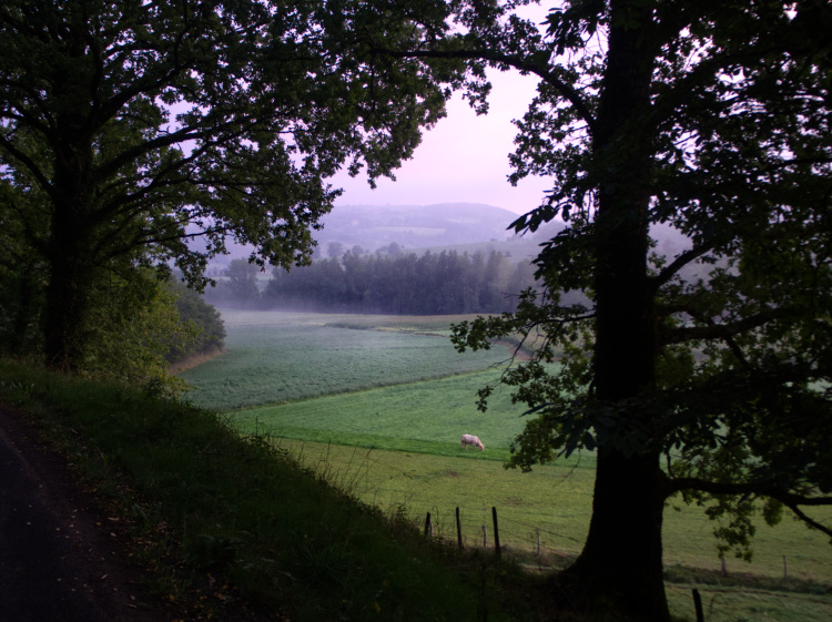 In the morning they wish us bon chemin as we leave, the air still cool, mist rising from the valley floor, the landscape bathed in golden light. Along rural backroads, past granite outcrops and green fields and up into the pine forests. Trees gnarled by wind and ice and tapped for turpentine. Men bringing in hay and wood before the season turns. Hedges sweet with fragrant honeysuckle. Up higher into beechwoods, their noble trees planted to pay for weddings and the purchase of new estates. Sunlight illuminating the canopy and drenching the world in bright green light.