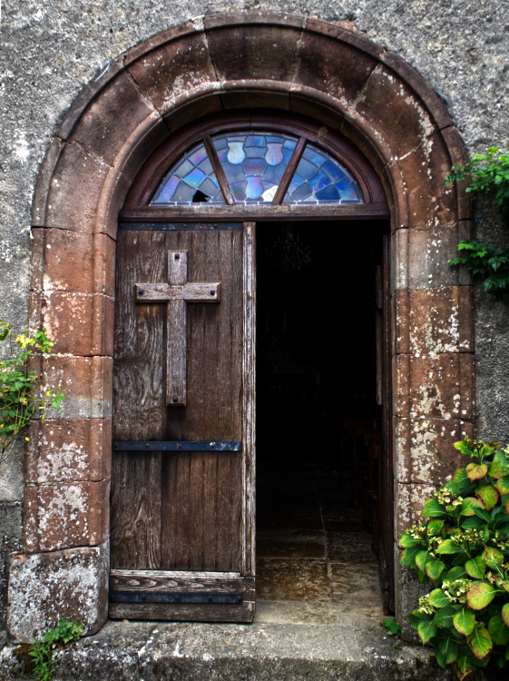 Fantastical carved wooden sculptures on the outskirts of Sangues. A poignant diorama of the life of Saint Bénilde, educator and patron saint of accordion players. We pause outside the Romanesque church of Saint-Médard. Solemn bells ring out and the villagers congregate to mourn the passing of one of their own.