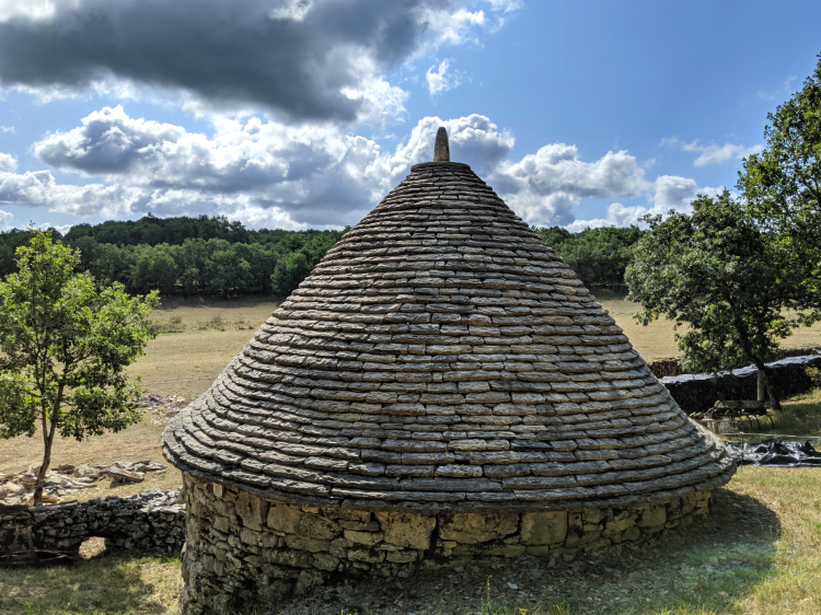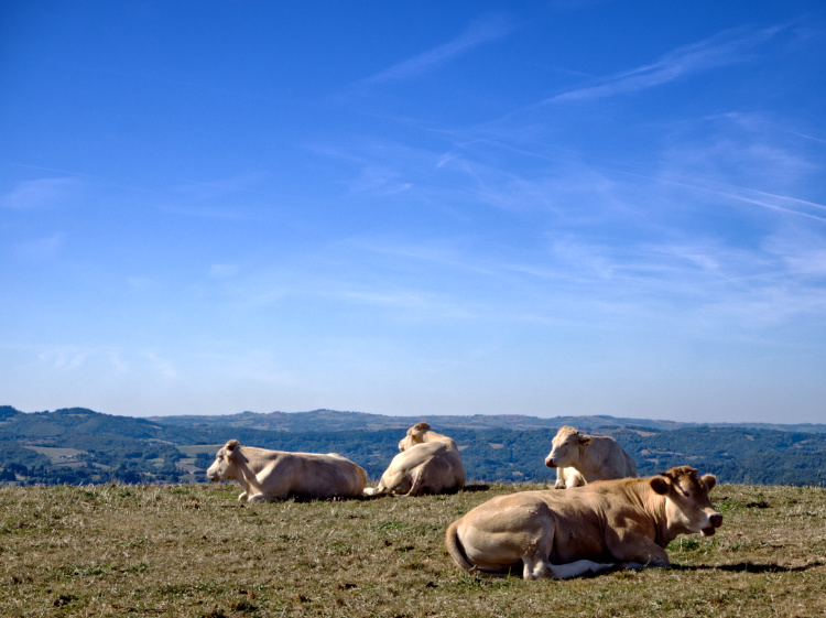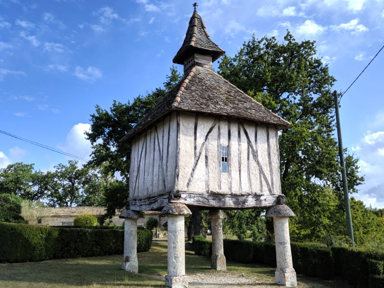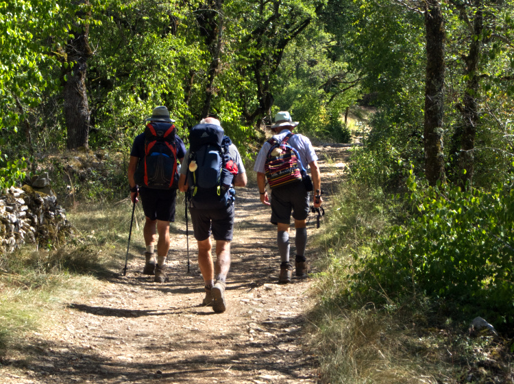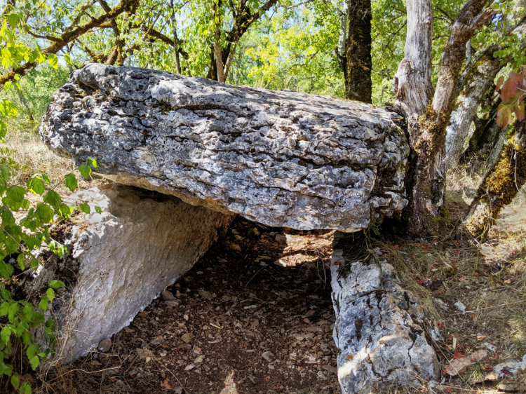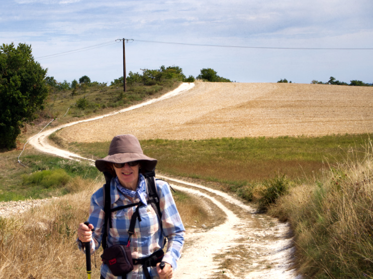 Neolithic dolmen tombs scattered about the limestone plateau. Oak forests providing shade on this cloudless blue-sky day. Eager for lunch we stop at Limogne-en-Quercy but fail to find any attentive service, let alone a meal. A rare occurrence in France. We walk out of two cafes and make do with the chocolate we are carrying and the figs we find en route.