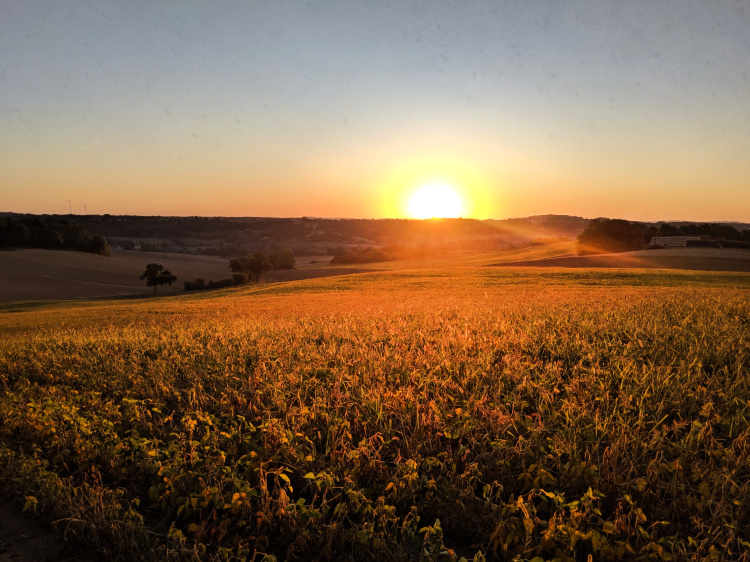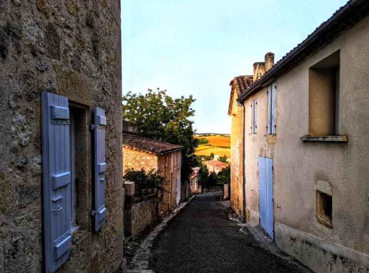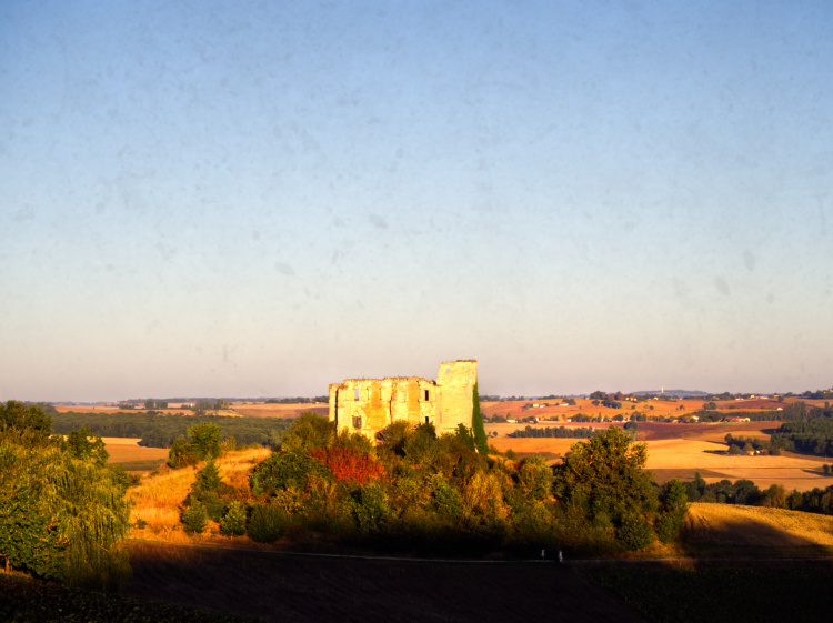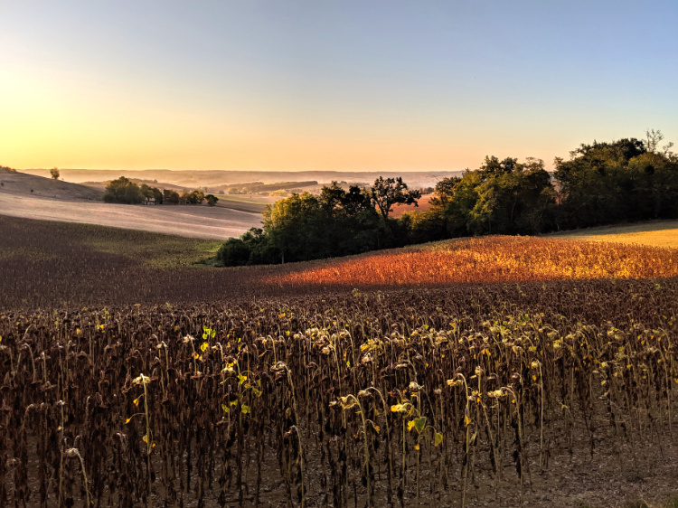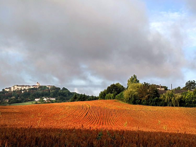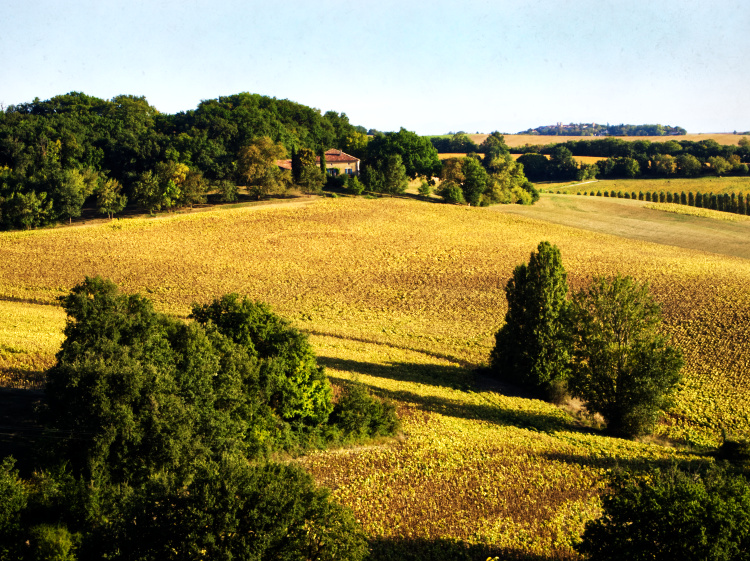 A slow, quiet afternoon, sitting on a shady terrace looking out onto a sundrenched landscape of undulating fields and forests. For the first time, we can just make out the Pyrennes, hazy and way off in the distance.