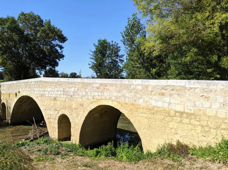 Fields of sorghum and blackened sunflowers. Plums ripe for the eating. A lavoir, a public outdoor laundry, common in Europe into the 20th century. Shady rest places where locals have left cool drinks for pilgrims to slake their thirst. We barely see another soul all day and lose ourselves in reverie until a mirage jet fighter comes out of nowhere, shattering our thoughts and bringing us sharply back to the 21st century.