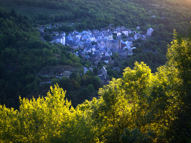 Down the street that Charlemagne marched in the 8th century and across the world heritage listed Roman bridge. A steep walk up to the Chapelle Sainte-Foy where monks once rang the bell to let the Abbey below know they were safely on their way. The sky above the ancient cathedral crisscrossed with orange and pink jet trails. The first rays of the sun blazing the hillsides purple with heather.