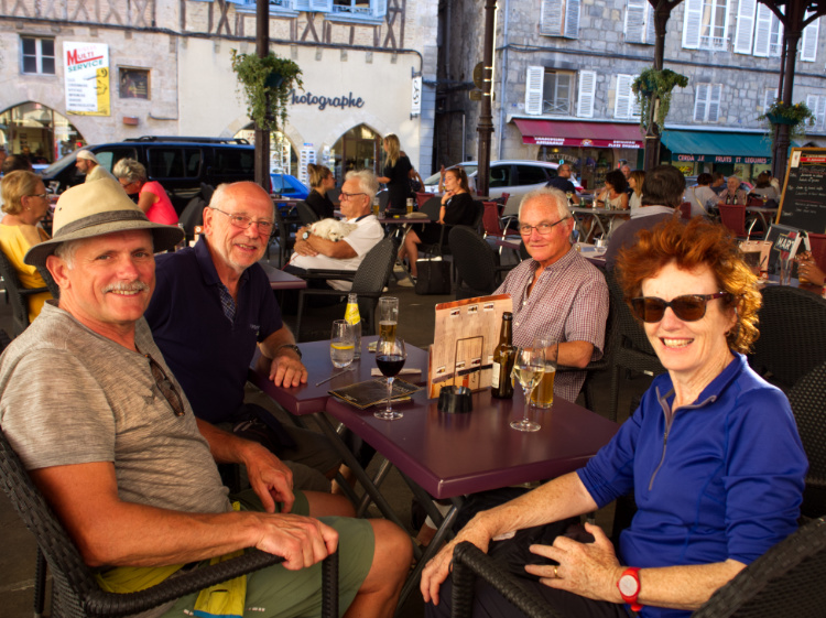 In the well preserved and lively old-town of Figeac, we linger over an aperitif with Jean-Pierre and Jacky. These two Frenchmen have become our guardians, smoothing the way for us when our tenuous grasp of the language fails us. Later, we spend some time talking with the gracious German couple we met at dinner last night. These companionable conversations, about the day and life more generally, are one of the highlights of the Way. Coming together as the day exhales. The camaraderie of strangers sharing an experience. The knowledge that it is transitory sometimes ‘catching the heart off guard and blowing it open.’