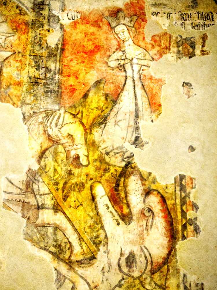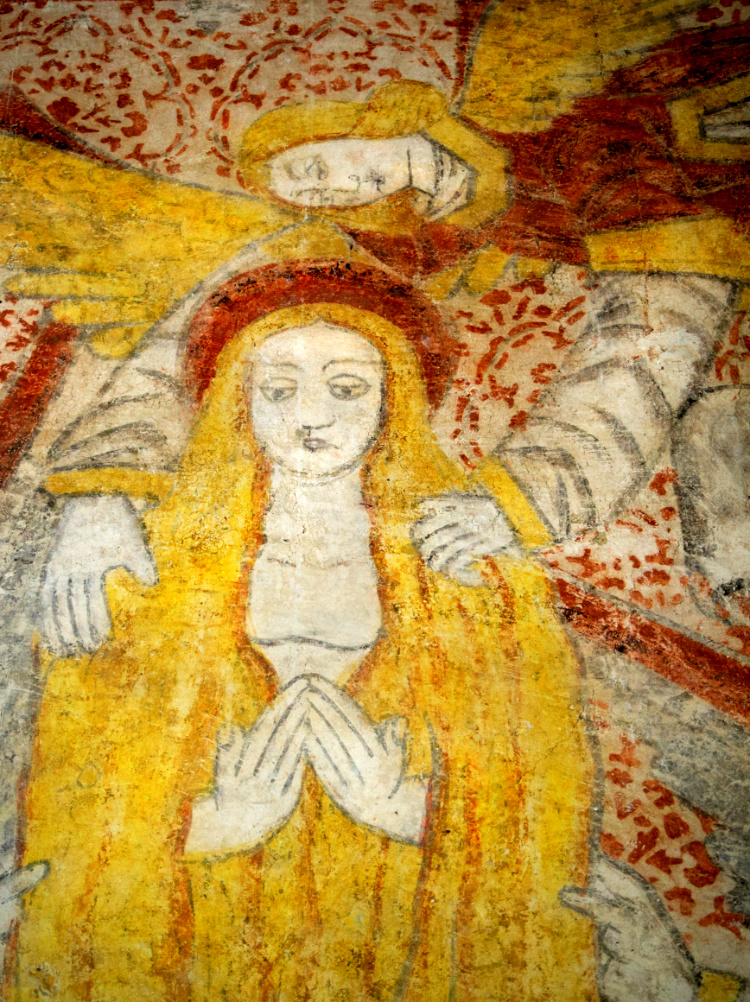Pale, flower-festooned villages shuttered against the sun this warm 28 degrees afternoon. A still inhabited 12th-century castle. The church at Saint-Antoine-de-Pont-d’Arratz with its recently discovered medieval murals; one of St George and the dragon and one telling the story of St Blaise.