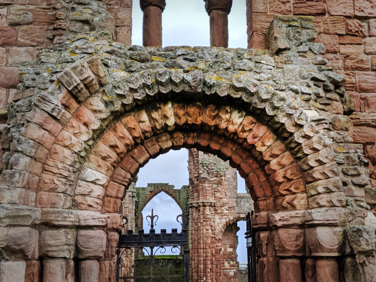 Rooks in the stubble. Wild geese in flight. The Monteath Mausoleum alone on the skyline, its entrance guarded by two stone lions, one awake and one strangely asleep. On across fields and along the river path to Jedburgh with its oft-sacked Abbey and the fortified house where Mary Queen of Scots stayed in 1566. She spent a few weeks here, so exhausted by her arduous duties that she caught a fever and nearly died. Later on, when held in captivity by Elizabeth I of England she lamented “Would that I had died in Jedburgh …”