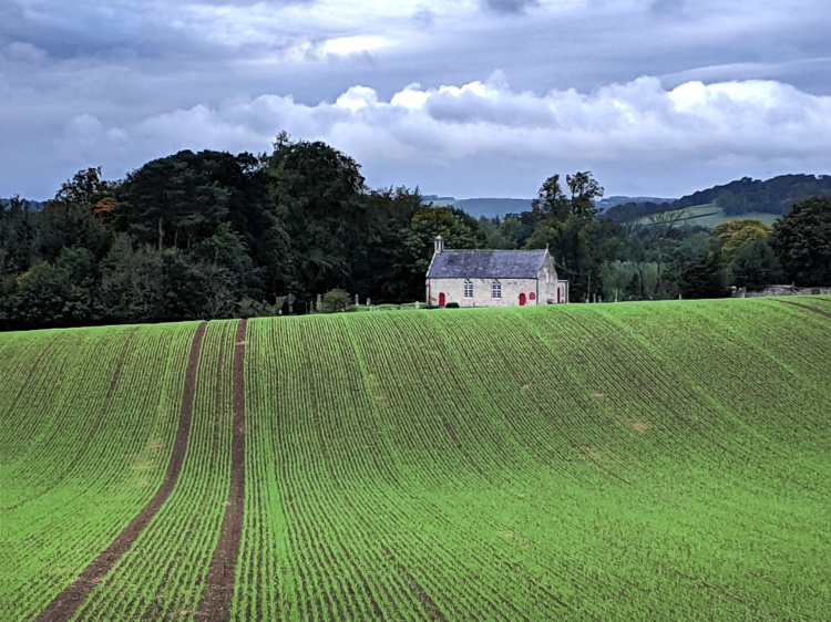 A formation of geese in the sky above us. Ring-necked pheasants exploding out of hedgerows and launching into flight. At Morebattle we stop for lunch in a cafe within a near-derelict ‘but under restoration’ 18th-century church. The timid but determined vicar whose vision it is to remake the church has recently returned to the village after a 20-year hiatus in Australia. She’s pleased to share stories of life in Canberra and her plans for the church which she hopes will become a focal point for the local community and a stopping place for pilgrims.