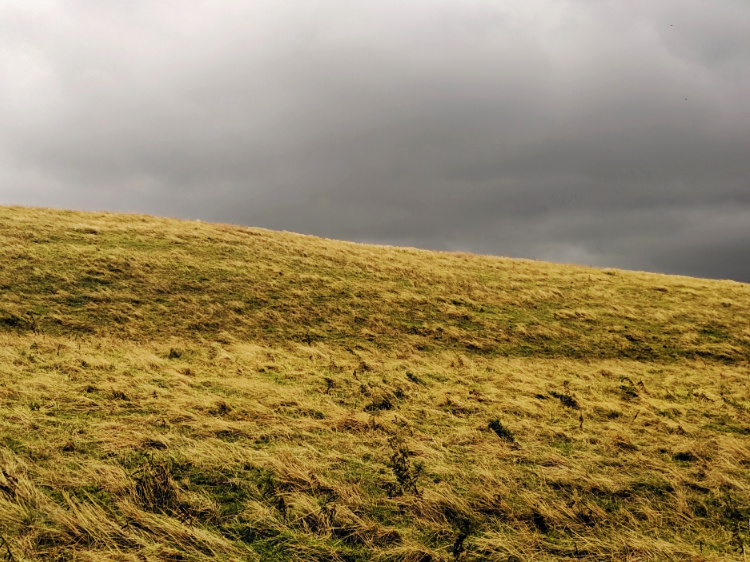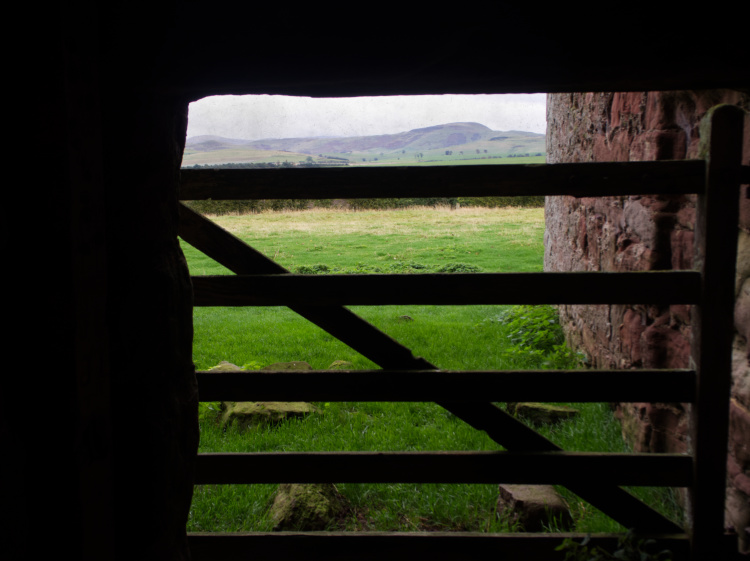 The land of the curlew, of Iron Age ring forts, neolithic stone circles and vast expanses of moorland grass and heather. We walk uphill in the unceasing rain to the border fence and climb over a stile into England.