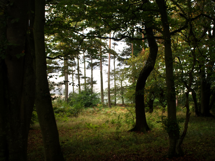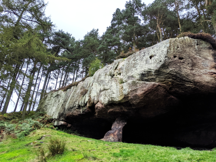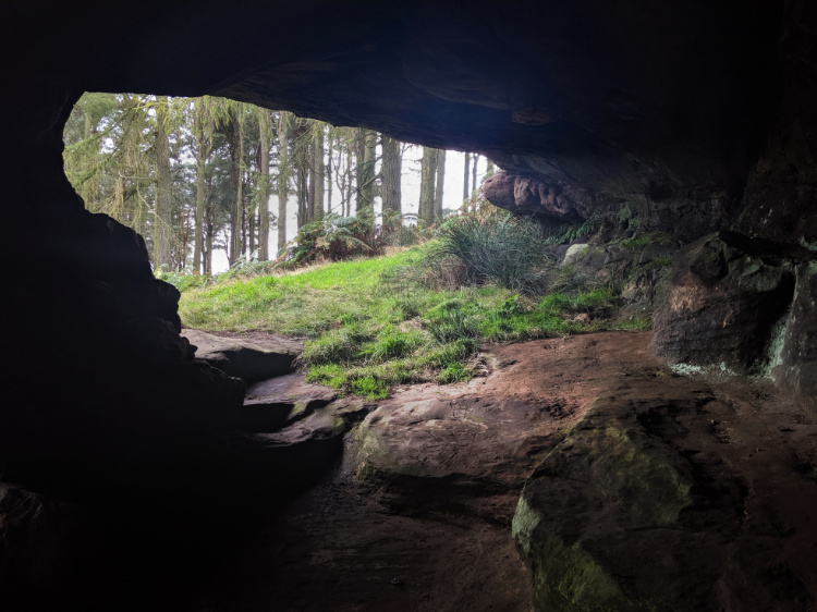 Walking through dusky green conifer woods to the dramatic sandstone overhang where monks rested with St Cuthbert’s remains in 875 AD, after fleeing Lindisfarne. On a rocky ridge above the cave, we can just make out Holy Island, shimmering off in the distance.