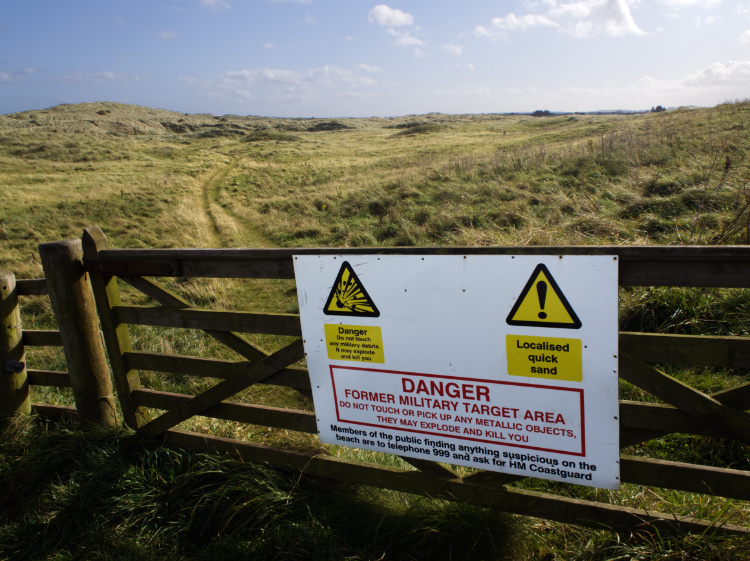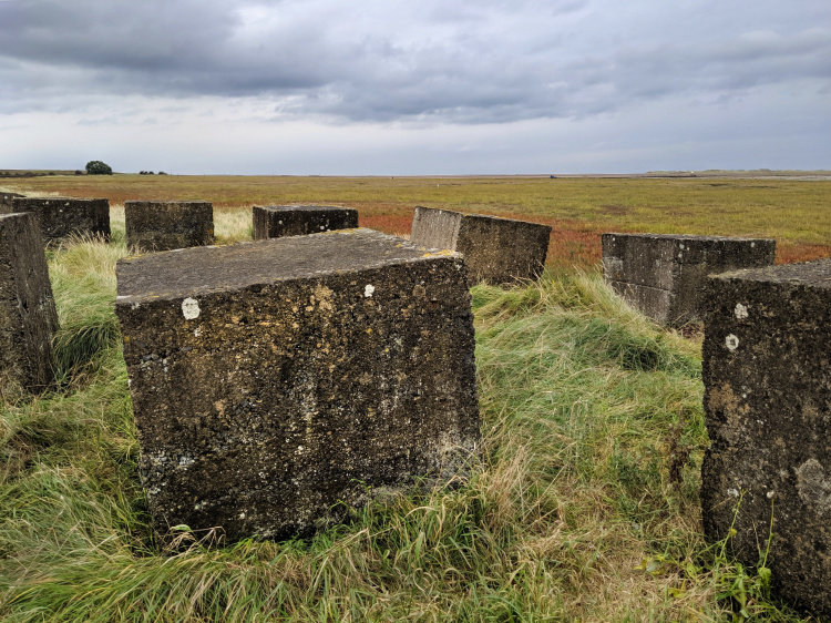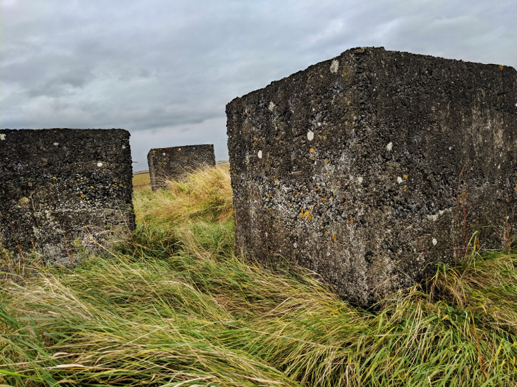 Leaving behind the wild, mystical, windswept island we find our way to the Northumberland Coast Path. A double row of concrete anti-tank blocks, two pillboxes and a graffitied, disintegrating observation tower. This coast was at risk of German invasion during WW2 and was used by the Allies for live bombing practice. Signs warn us not to touch or pick up any metal objects lest they explode.