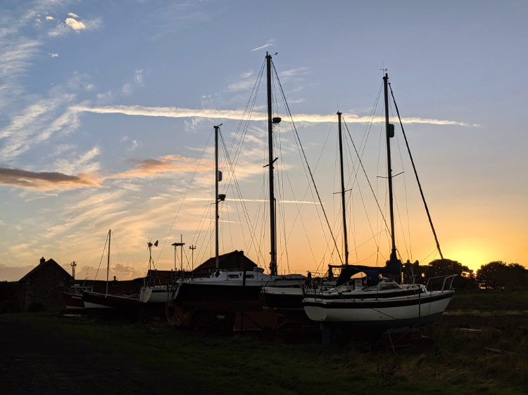 Before night falls we wander around the island to absorb something of its beauty and its history. The Lindisfarne Priory was founded in 635 AD by St Aidan, an Irish monk. St Cuthbert joined the monastery in the 670s and, as Prior, reformed the monks’ way of life so that they followed the religious practices of Rome, rather than of Ireland. He lived for a time as a hermit on a remote offshore island until he was made a Bishop in 685. He was regarded as a seer and a healer and after his death in 687 was buried at Holy Island. In 875, following Viking raids, his remains were removed by the monks and later buried at Durham Cathedral. The priory was rebuilt and sacked again several times during periods of border warfare and religious suppression. It is now an imposing sandstone ruin open to the sky.