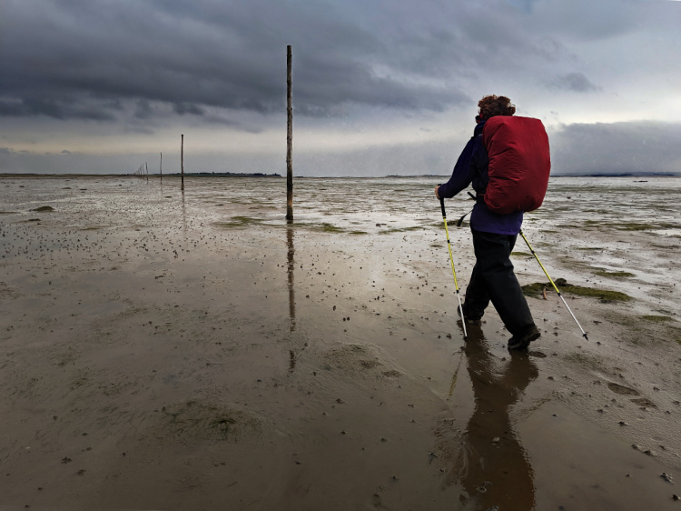 At Holburn Lake and Moss, a wintering refuge for greylag geese, St Cuthbert’s Way joins St Oswald’s Way, a pilgrim route opened in 2006. We walk past Kyloe Woods, a reserve for the endangered red squirrel, through the village of Fenwick and on towards the coast. Before we can cross the main east-coast railway line, we have to call the signalman on the yellow phone provided and get the all-clear. Then, past fields and WW2 coastal defences, we see the line of tall, thin poles that mark the ancient pilgrim path across the causeway to Holy Island, safe to walk only at low tide.