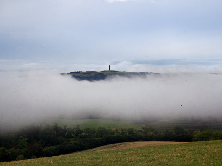 Low cloud and fog make an island of the hilltop from which the Waterloo monument rises. This massive sandstone tower commemorates the Duke of Wellington’s triumph over Napoleon at the Battle of Waterloo in 1815 and shares its site with the remains of an Iron Age hill fort.