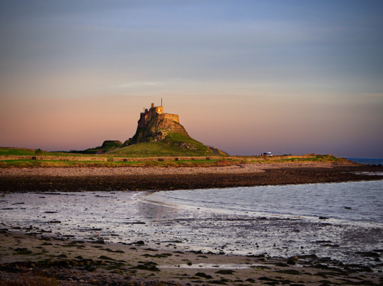 On a steep, rocky outcrop at one end of the island is the magnificent 16th-century Lindisfarne Castle, transformed into a home by Edwin Lutyens in the early 20th century. To the north of the Castle is a small, walled garden designed by Gertrude Jekyll. Just offshore is an island with the remains of a medieval chapel. All around are sea and lakes and dunes and, at night, the on/off flashing of lighthouses.