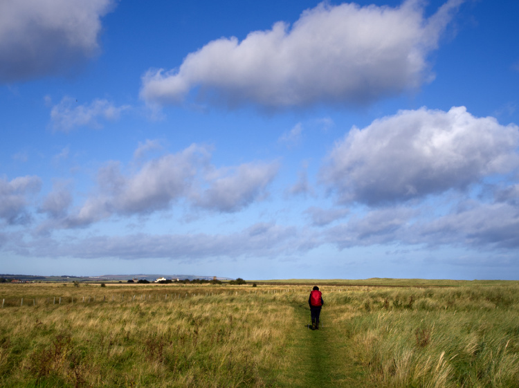 A break for tea and scones at a golf clubhouse where ‘walkers are welcome’ even if the well-turned-out members look askance at our scruffiness. Then, northwards up the coast, climbing high, grassy dunes to look out onto the broad arc of Chiswick Sands, thought to be ‘one of the most beautiful stretches of coastline anywhere in the UK.’