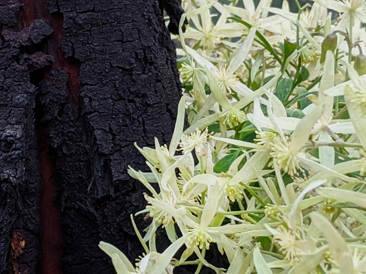 Out onto Studley Park Road with views across to the gothic buildings of Abbotsford Convent before we turn towards the Yarra River and slip into wildness. A cascade of cream, starry clematis flowers, baubles of bright yellow wattle and pale-trunked eucalyptus. Cutting across a headland we walk through native grasslands to the edge of the high sandstone escarpment that looks out over Deep Rock.