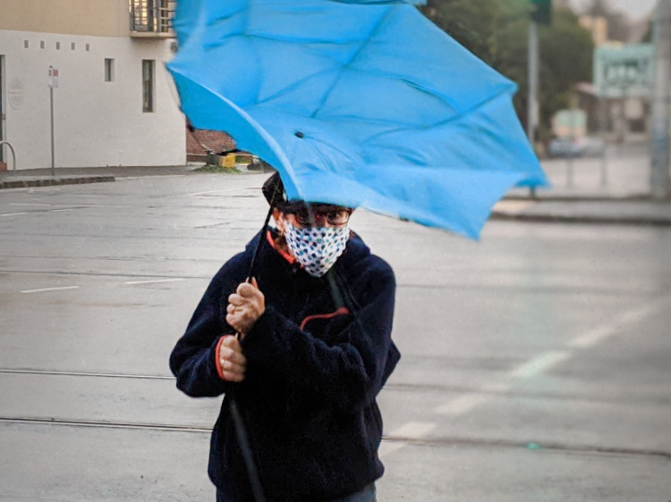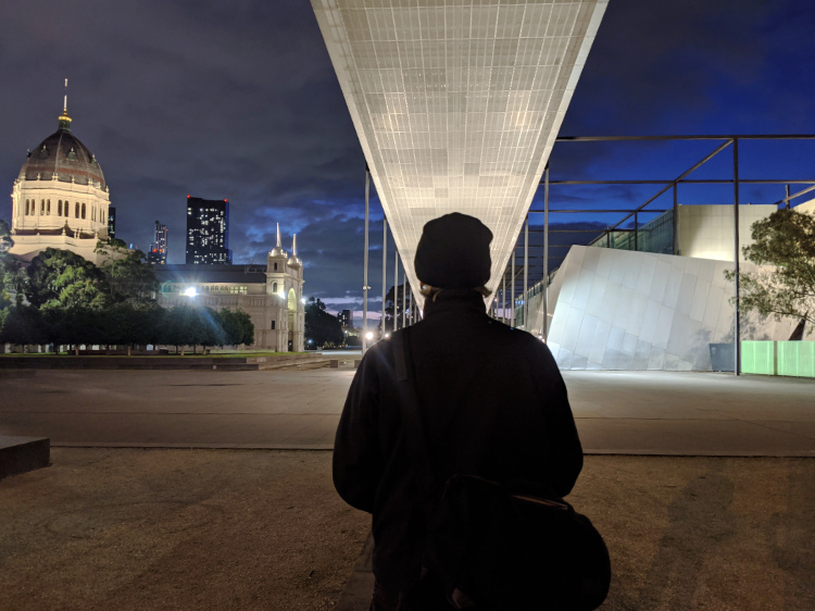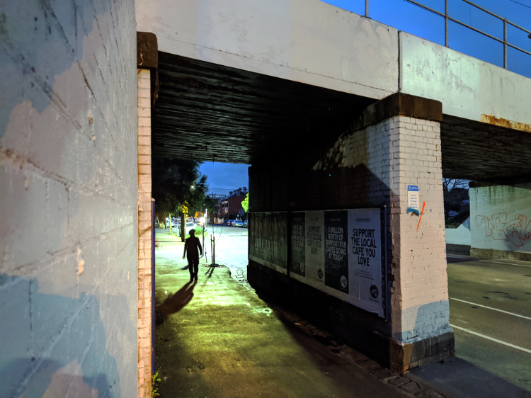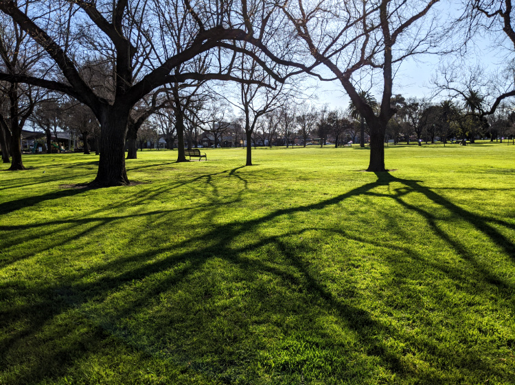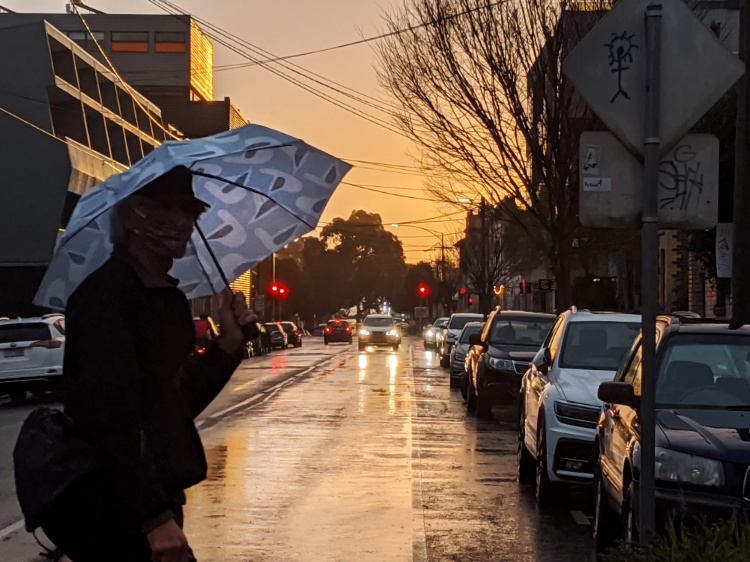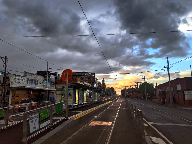 Civil dawn, the brightest form of morning twilight. It is light enough for us to navigate the dirt paths that wind through the bush by the river. There are more people out and about than yesterday. A handful of other walkers, cyclists and early morning runners. Through the Darling Gardens where bats are still foraging, down the quiet streets of Clifton Hill and across the pedestrian bridge high above the Eastern Freeway. There’s some traffic on the move, but it’s far from its normal morning peak.