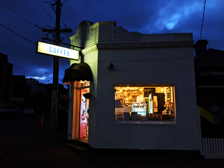 We stop for take-aways at our favourite, old-school Italian cafe in Smith Street. They say business is slower than it was during the first lockdown. The deserted street bears witness to this.