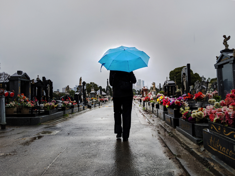 Birdsong building to a crescendo as we leave the park. A grand magnolia tree, caught in the ethereal dawn light. Northcote Cemetery, tucked between sleeping houses, is padlocked at this hour. The sky begins to lighten as we make our way home, night transitioning into day.