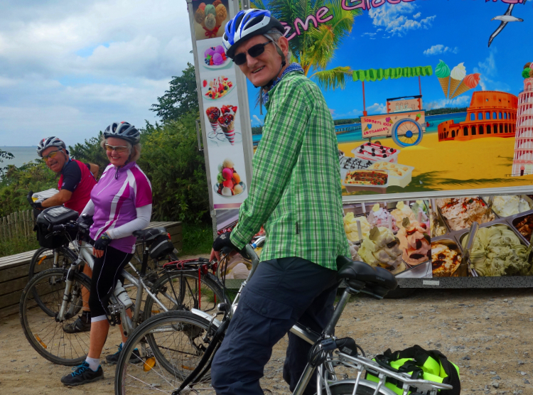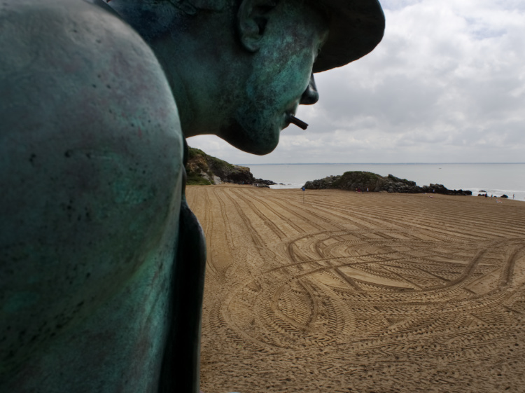 A 65-kilometre warm-up ride along the coast. Past lighthouses, fishing huts built on stilts high above the water and a procession of French families carrying fishing nets, brightly coloured beach balls and striped towels. We stopped at Saint Marc sur Mer to pay homage to Monsieur Hulot and then cycled on through the salt marshes to the medieval walled village of Guerande.